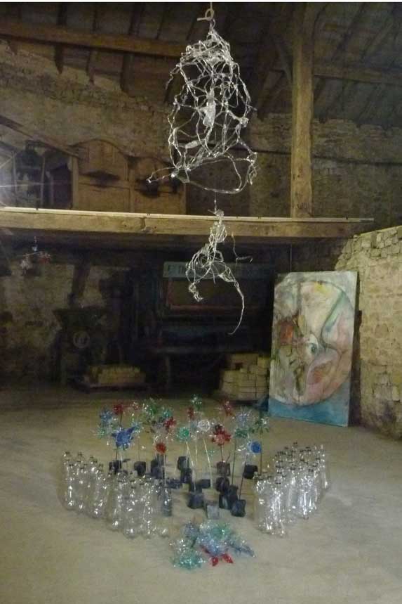 Inauguration de la ferme départementale de Vaudémont / colline de Sion 30-31 mars 1er février 2013 .. week-end de Pâques Renouveau-Renaissance Avec EPPLA collectif En Passant Par l'Art J'y ai présenté ce plasticonte : Une installation en bouteilles plastique recyclées : Plastik Pogo