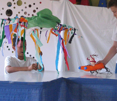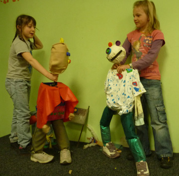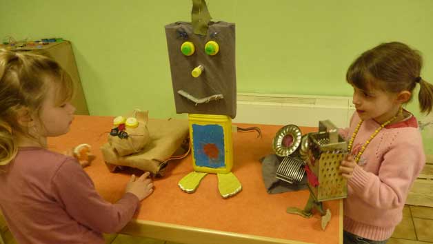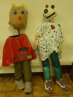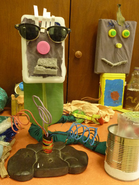 Les enfants créent des personnages à partir d'objets divers et variés et même avariés ..